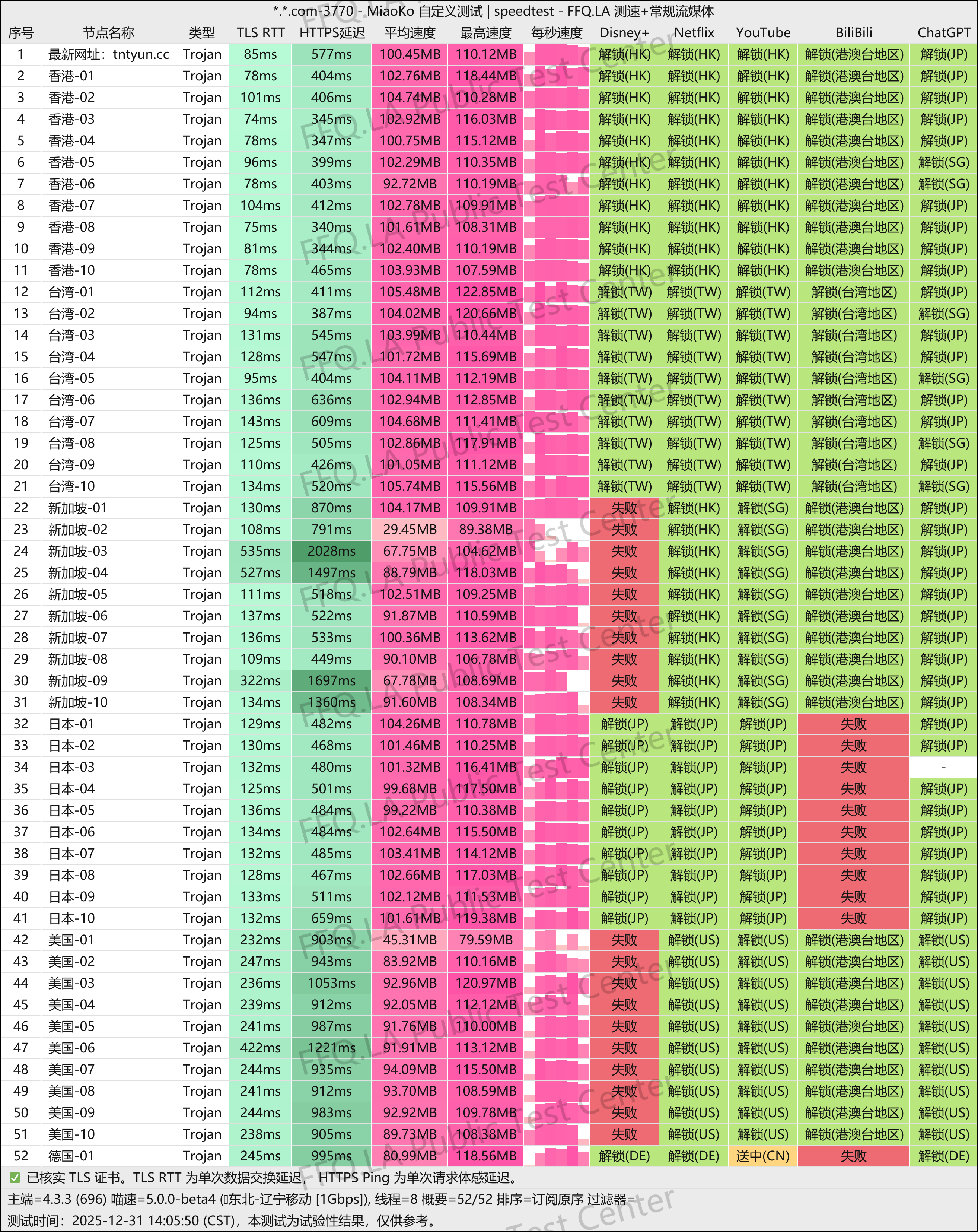 专业测速数据(测速时间2025/12/31)