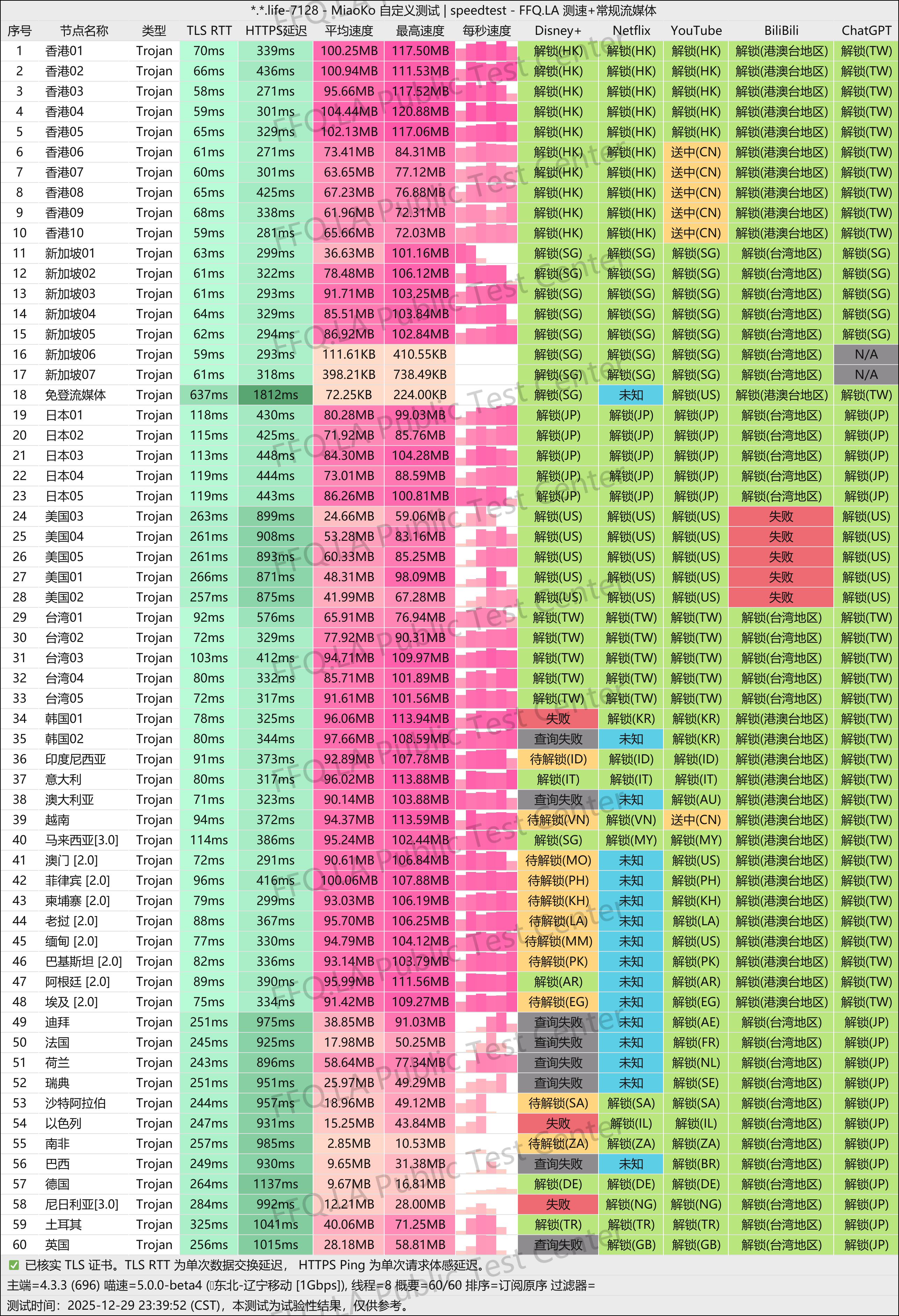 数据非常好,三网优化没得挑,解锁基本全绿,稳定性也很好,只有个别冷门节点速度不行。