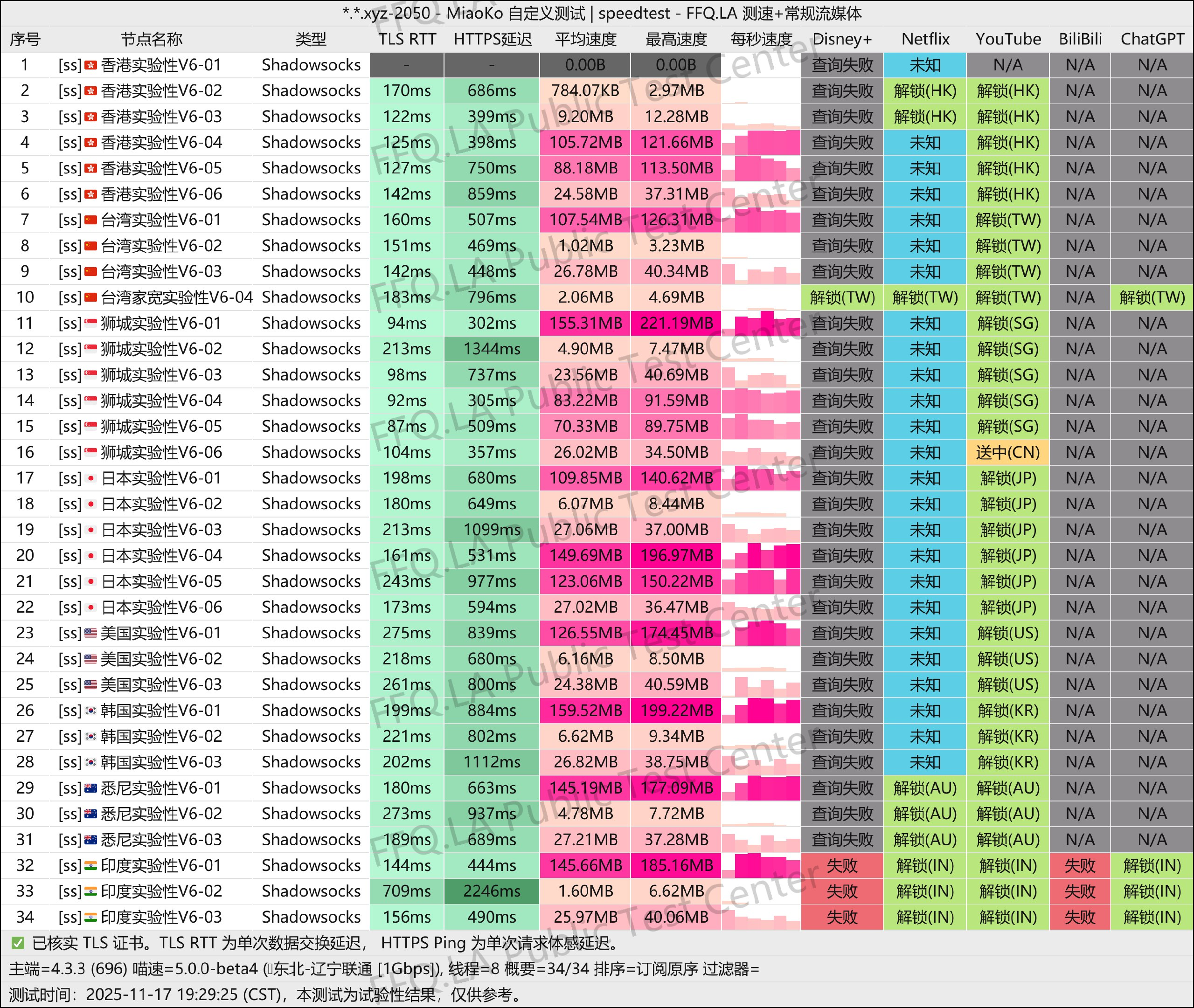 为了确保测试结果的准确性和参考价值,我会对自购/试用的机场进行每周定期测速,结合日常使用情况评估稳定性、延迟和节点优化。相较于单次测速,长期的数据积累和分析更具指导性。