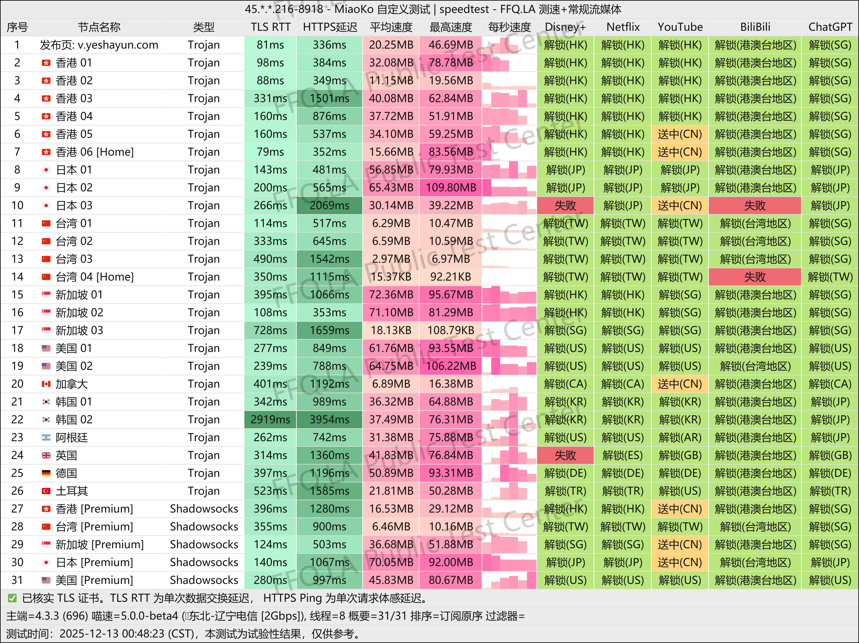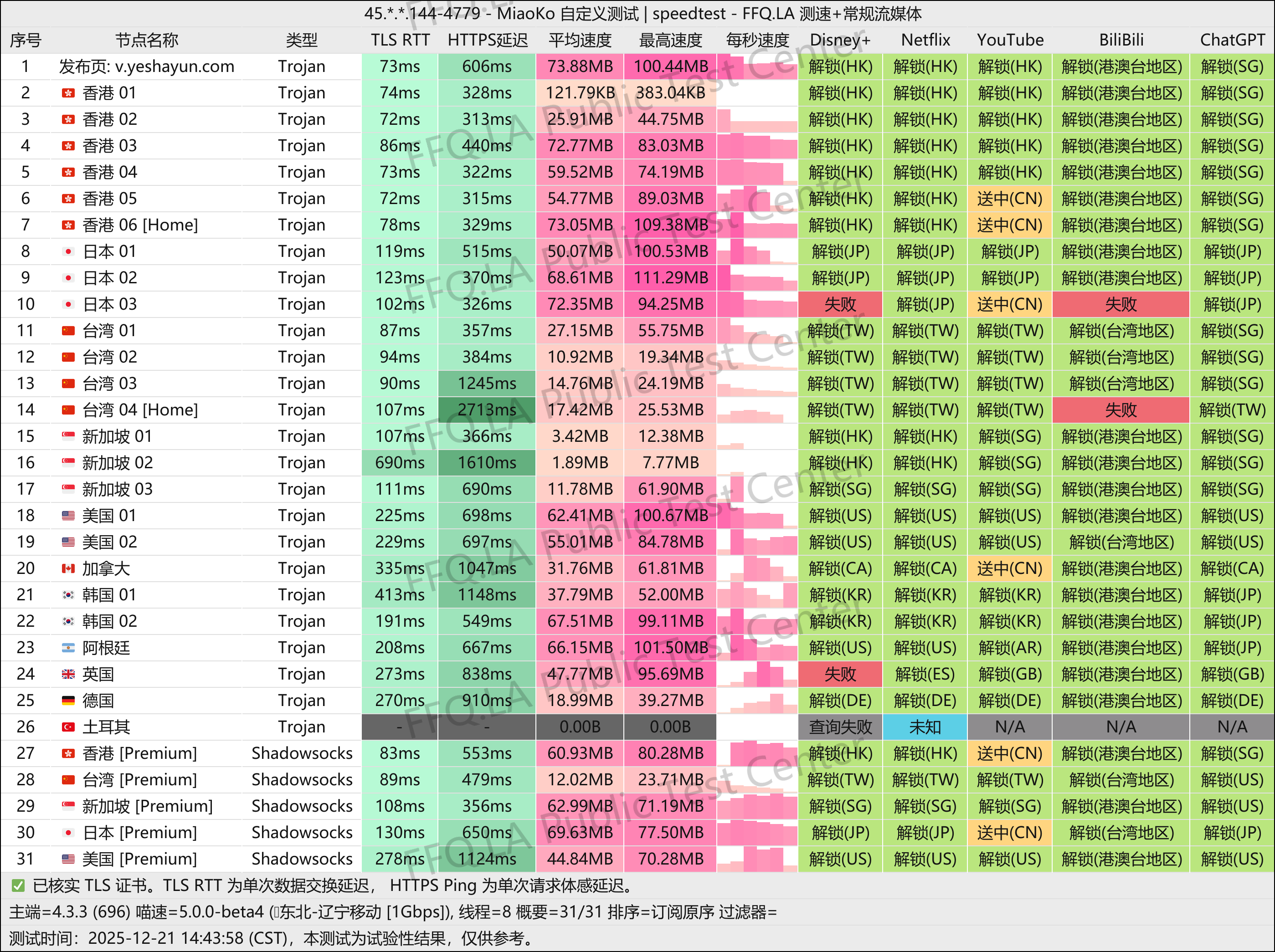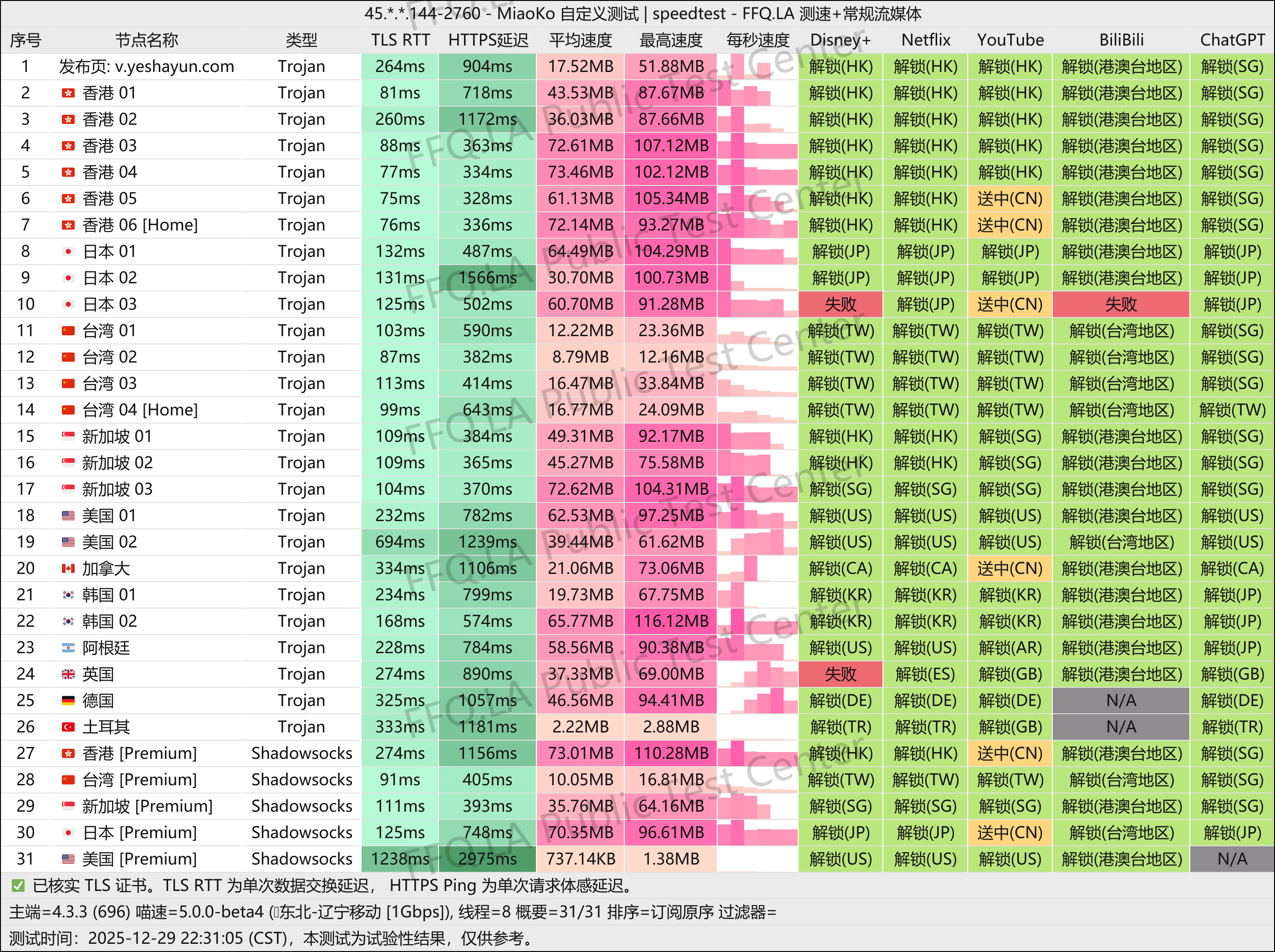 🚫 本测试为个人实际使用记录,所有测试基于自费订单,只测评好用的机场,拒绝恰烂饭。文章侧重长期表现趋势,而非单次测速表现。