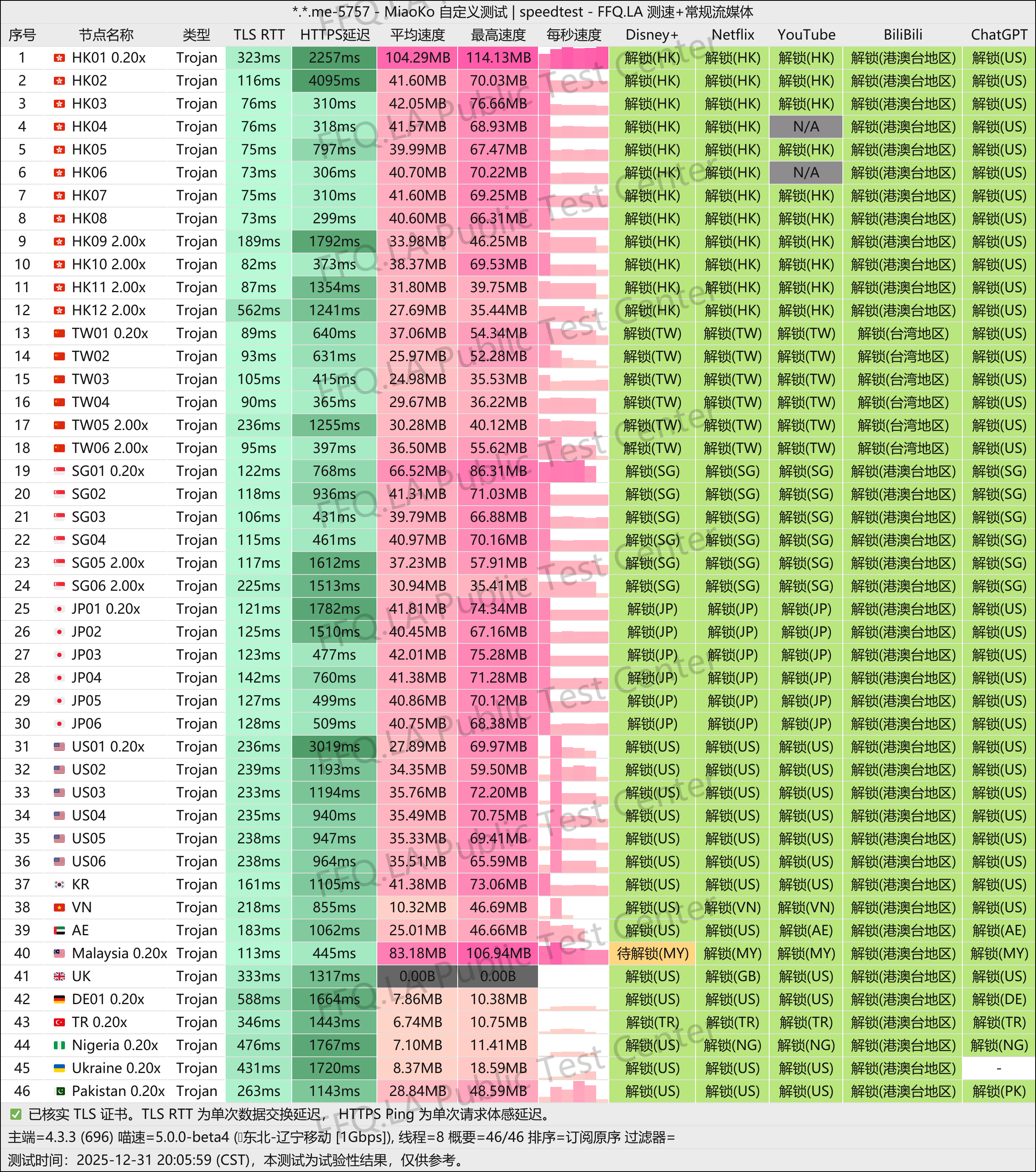 我在移动宽带 + 电信宽带测试,节点覆盖香港、日本、新加坡、美国。