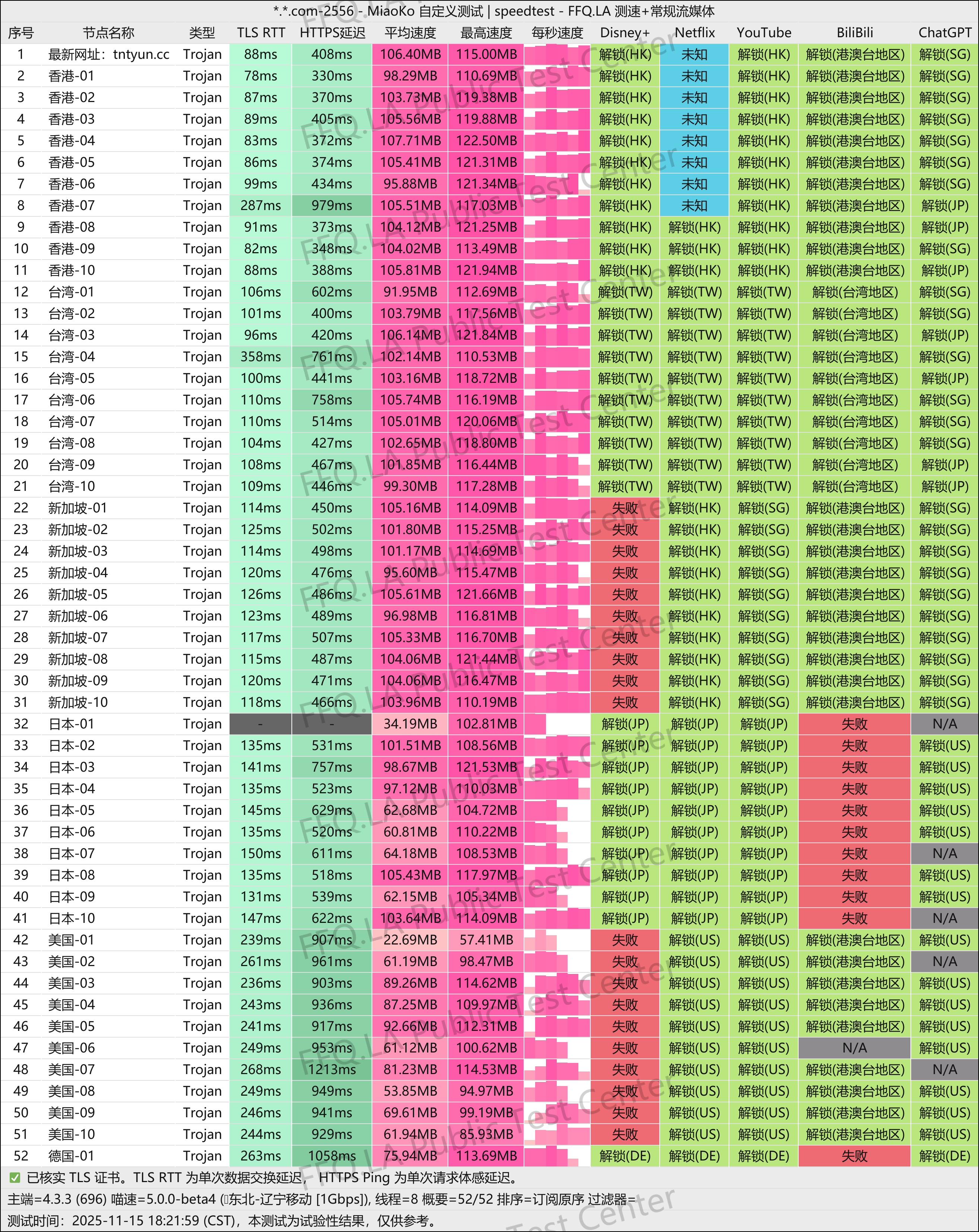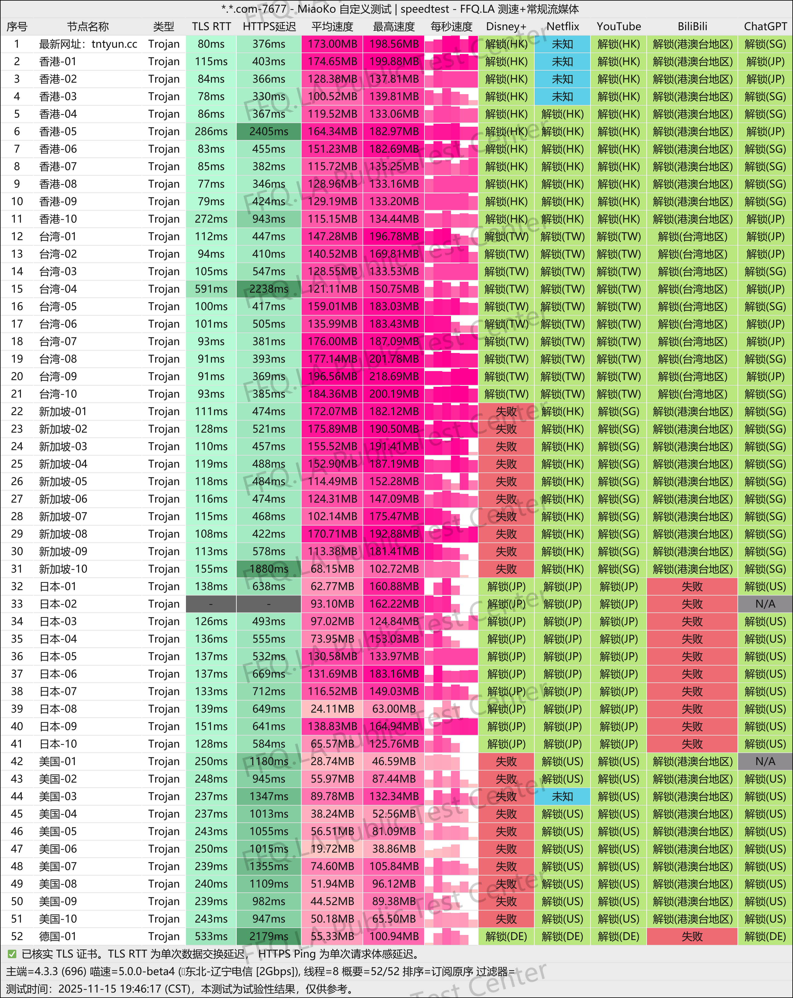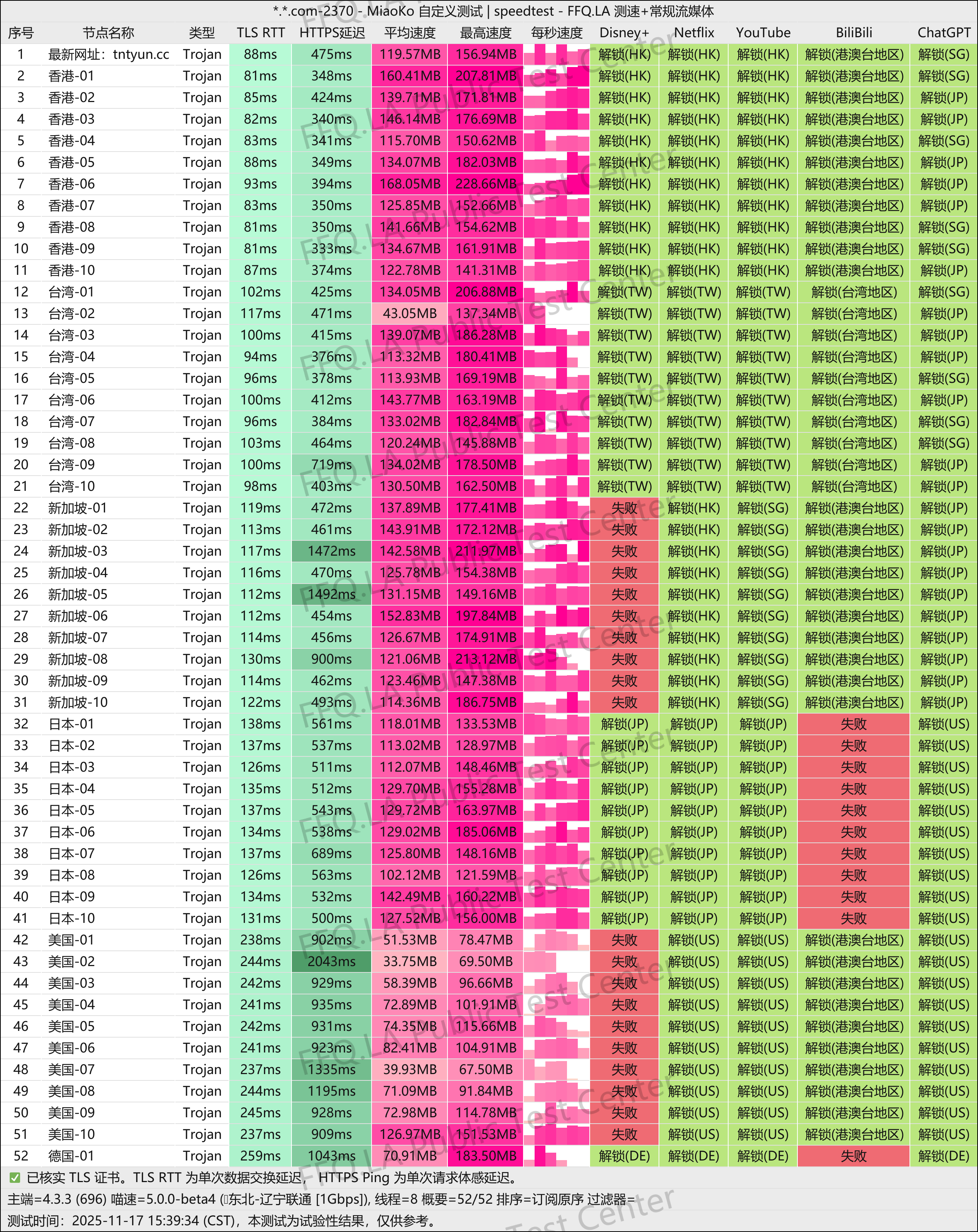 三网优化做的很好,速度快,延迟低,个别地区迪士尼和bilibili解锁不行,影响不大,可以切别的节点观看。这个数据和价格相符,不存在信息差。